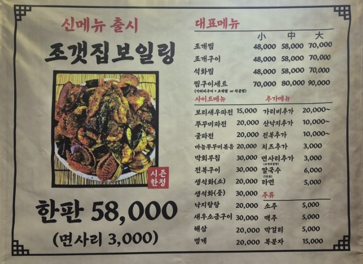 대표 메뉴는 이름 그대로 조개요리!